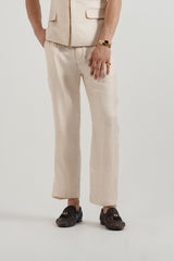 Matching Trousers with Button & Zip Closure, Semi-Elasticated Waistband, Belt Loops, and Two Side & Back Pockets. Crafted from Self Woven Cotton, the Pants offer Functionality and a Refined Finish.
