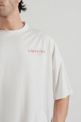 Oversized Fit T-Shirt in White, Made from 100% Cotton. Featuring Short Sleeves, a Crewneck, Dropped Shoulders, Sadhbarg Logo Print, and Marigold Printed Patchwork, it delivers a Relaxed Fit with Streetwear Appeal