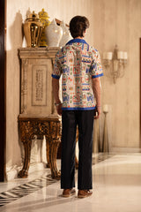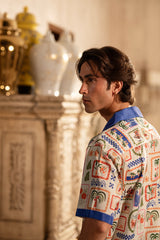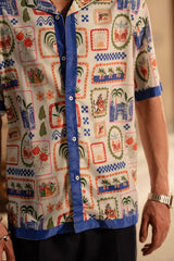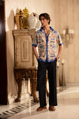Make a statement with this men’s printed half-sleeve shirt, designed for a bold yet casual vibe. Featuring a contrasting blue placket and collar, it adds a refined touch to its vibrant print. Perfect for warm-weather days, this versatile shirt brings personality and style to any casual wardrobe.