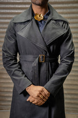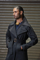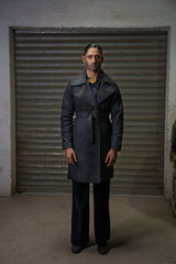 Step into winter with the timeless poise of the Saahil Navy Trench Coat. Finished with a buckle-fastened tie belt, it offers definition and enduring appeal.