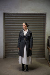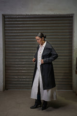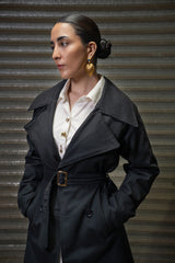 Experience timeless tailoring with the Saahil Navy Trench Coat, designed in a structured fit that brings sharp lines and graceful movement together. Its double-breasted front and waist-belted silhouette create a confident, seasonal essential.