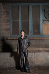 Elevate your ensemble with the Sangam Leather Shacket, blending shirt-style ease with the richness of genuine leather. Its dark palette enhances its contemporary charm, making it a standout winter layer.