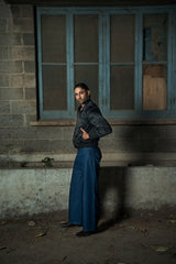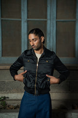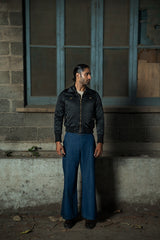 Command attention with the Sunehri Bomber, where classic bomber design meets elevated detailing. Gold brass embellishments and a wing collar add a luxe twist to this outerwear.