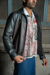 Elevate your winter layering with the Sangam Leather Shacket, a refined shirt-jacket hybrid designed for everyday versatility. The contrast of black and chocolate leather adds depth, while the clean snap-button finish gives it a sleek, contemporary character.
